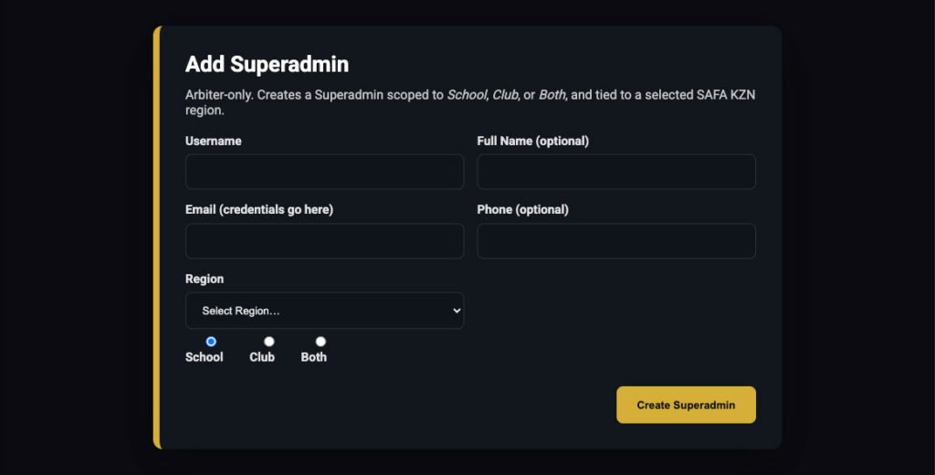 Navigate to the User Admin section on the left sidebar and select “Add Superadmin”.